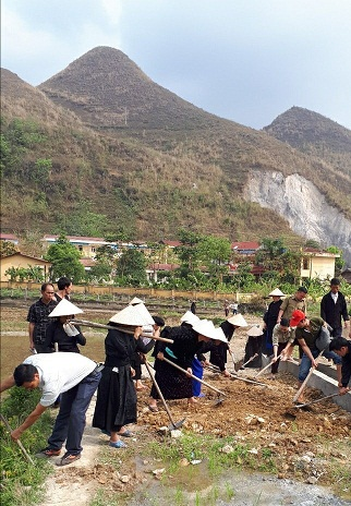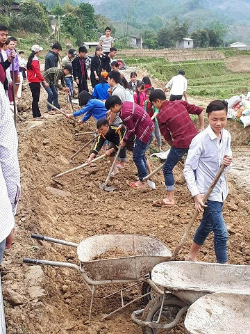 Một số hình ảnh hoạt động tham gia san lấp mặt bằng đường nội đồng Nà Ngoa